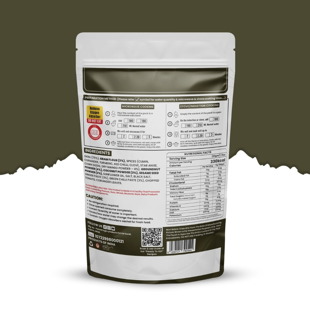Meet your complete, ready-to-eat Indian meal — perfectly balanced for busy days, travel, and fitness goals. Each Bhindi Masala (Jain) pack brings authentic homemade taste, high-quality protein, and essential nutrients in minutes — just add hot water and enjoy freshness anytime, anywhere. Perfect for lunch, dinner, or when you crave real food without the hassle.