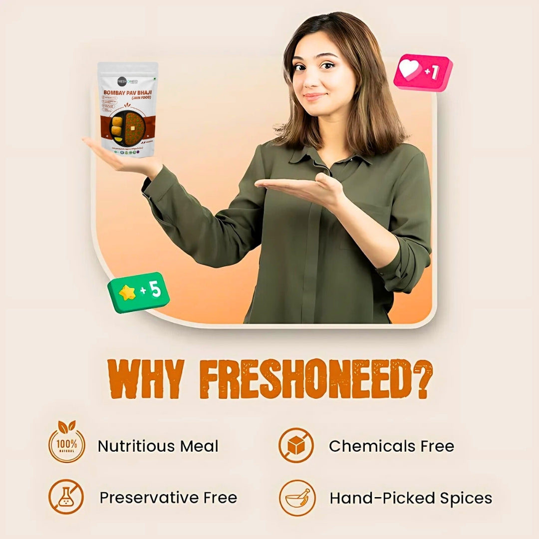 ✨ Freshoneed’s Jain Bombay Pav Bhaji – Authentic Street Food Taste, Now 100% Jain-Friendly. ✨