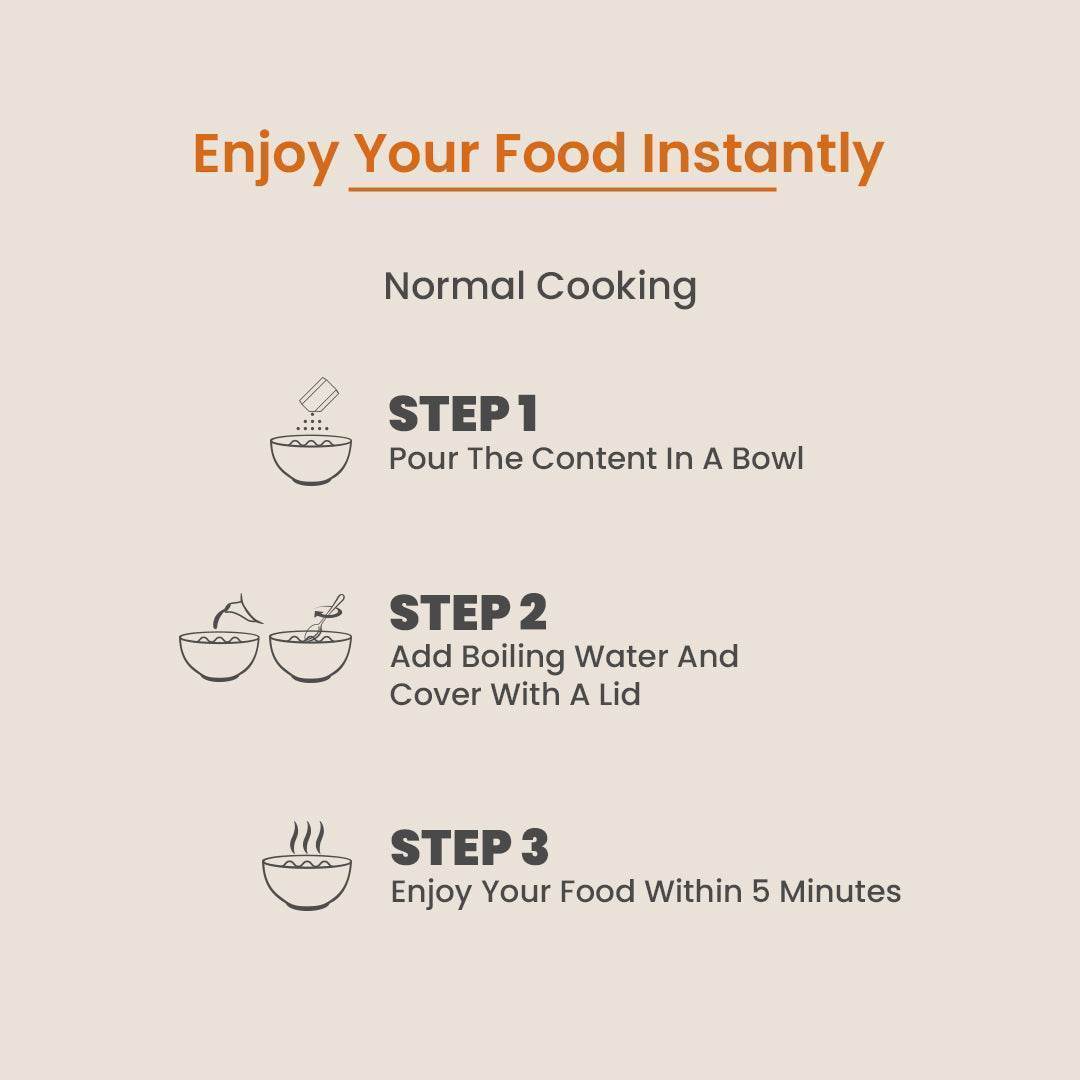 - ✅ Step 5: Stir and Serve – Uncover the bowl, stir thoroughly, and enjoy your hot, ready-to-eat meal!