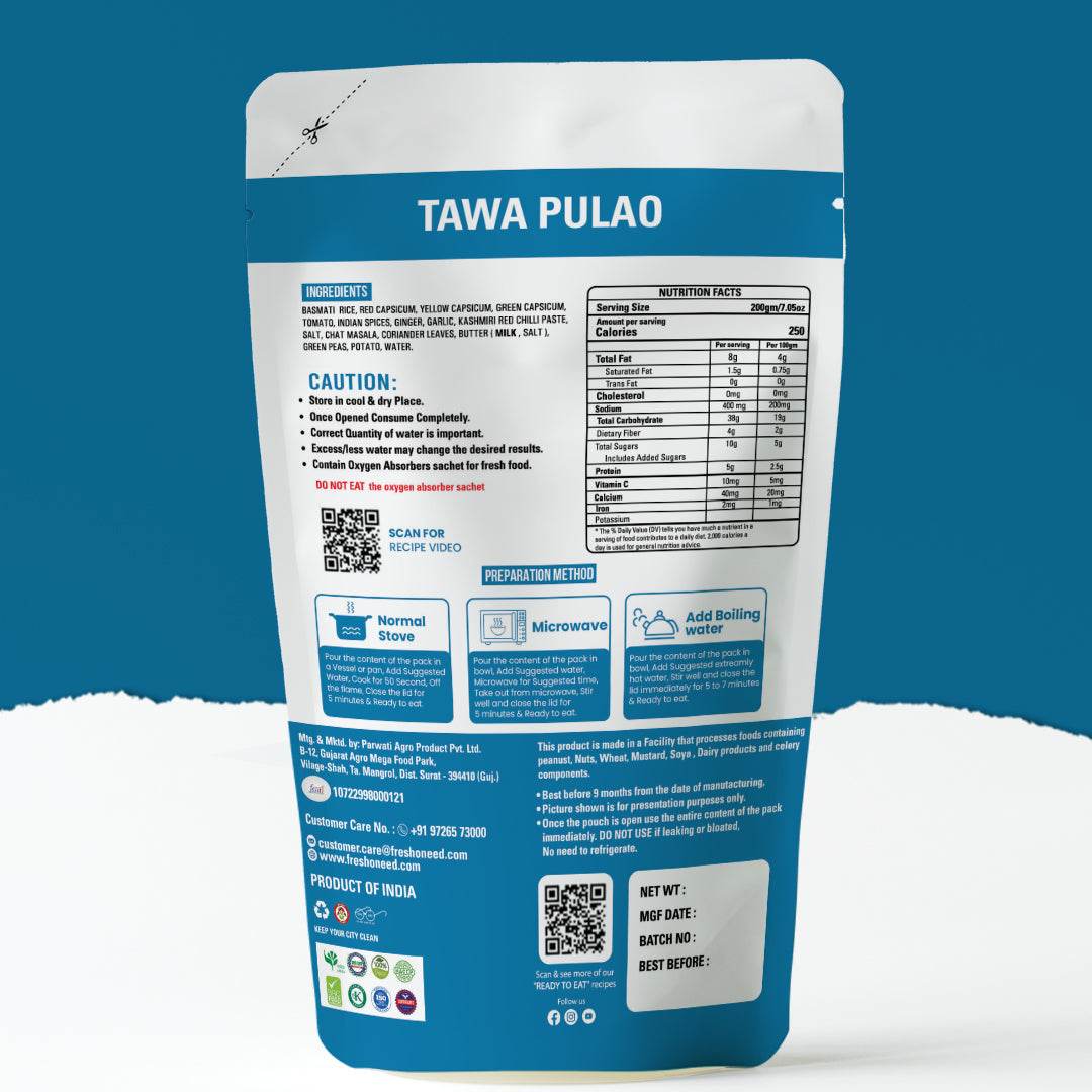 Freshoneed’s Ready-to-Eat Tawa Pulao delivers heat, heart, and homestyle flavour in one simple pouch.